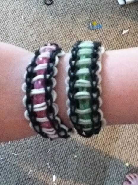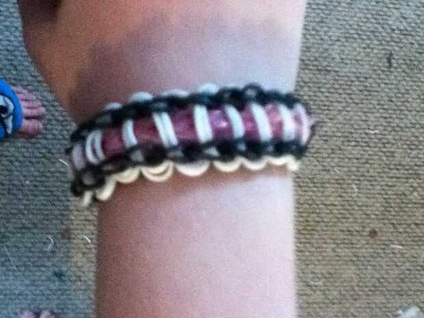 Paso 1: Obtener las herramientas Necesita su telar del arco iris, 2 colores de bandas de goma, un clip de c y un gancho.Paso 2: a partir de Una banda de goma en los dos pasadores de la torcedura. Y hacerlo otra vez con otra banda elástica.Paso 3:Gire