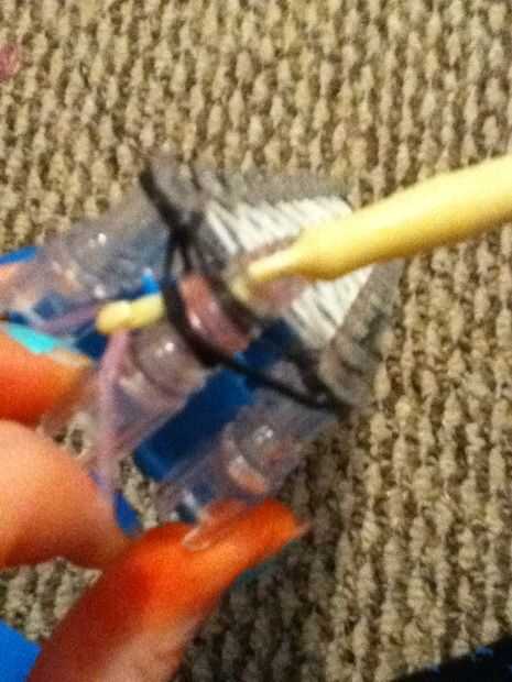 Paso 1: Obtener las herramientas Necesita su telar del arco iris, 2 colores de bandas de goma, un clip de c y un gancho.Paso 2: a partir de Una banda de goma en los dos pasadores de la torcedura. Y hacerlo otra vez con otra banda elástica.Paso 3:Gire