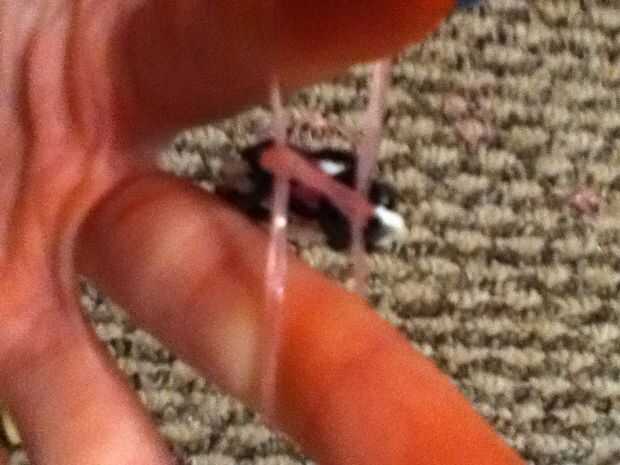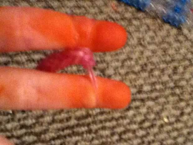Paso 1: Obtener las herramientas Necesita su telar del arco iris, 2 colores de bandas de goma, un clip de c y un gancho.Paso 2: a partir de Una banda de goma en los dos pasadores de la torcedura. Y hacerlo otra vez con otra banda elástica.Paso 3:Gire