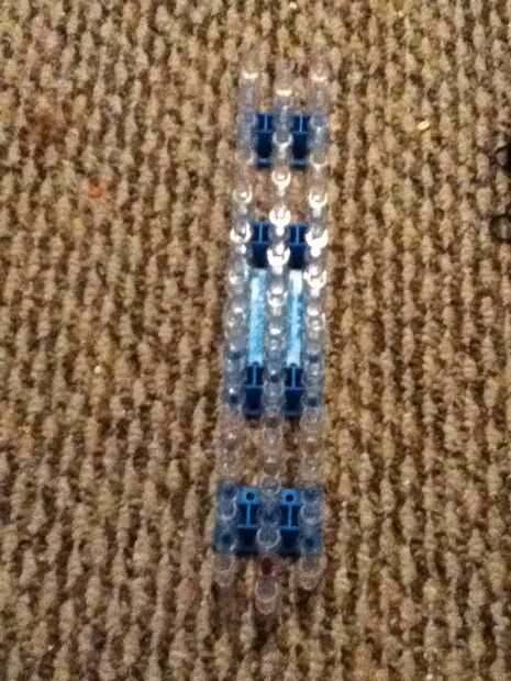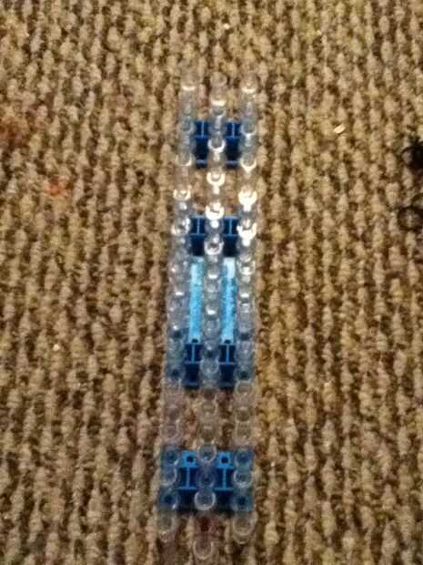 Paso 1: Obtener las herramientas Necesita su telar del arco iris, 2 colores de bandas de goma, un clip de c y un gancho.Paso 2: a partir de Una banda de goma en los dos pasadores de la torcedura. Y hacerlo otra vez con otra banda elástica.Paso 3:Gire