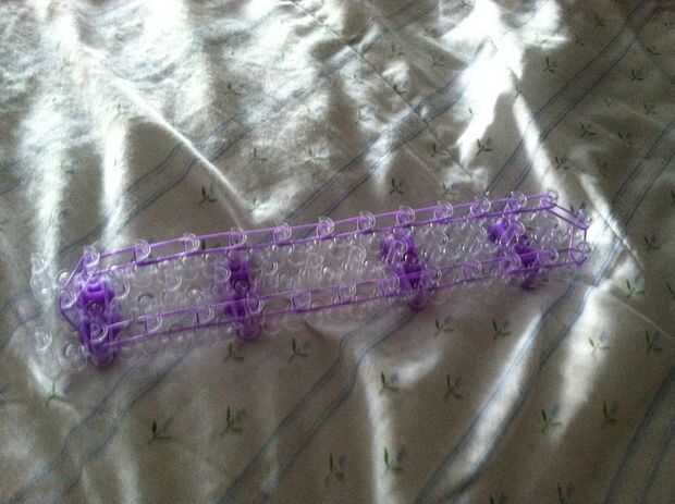esto es un braclet muy fácil y divertido para hacer. Esperamos que disfrutes!Paso 1: materiales Se necesita: un telar, gancho, elásticos y un clip de C.Paso 2: Colocar los elásticos Primero escoger tres colores y a la clavija central. Sacó su color e