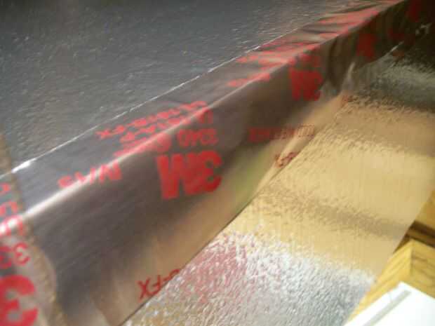 Pelar el revestimiento de la Cinta de aluminio y sello de los lados y la parte superior. También, la cinta del borde inferior de la cubierta donde se posarán sobre el marco.
