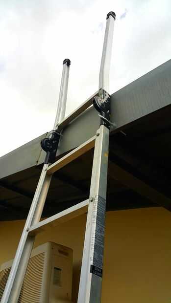 decidí que no me gustó el cambio leve de la escala. Usé las grapas en u para garantizar la parte superior. Ahora me siento más seguro yendo en y desde el tejado. La cadena de extraído y guardado para un futuro proyecto.