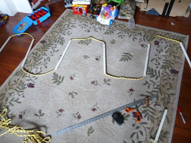 Lo mismo en la otra cuerda. Ahora presionar la segunda cuerda a través de puede ser difícil si usted está usando PVC pequeños y una cuerda gruesa.