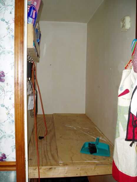 La primera orden del día, fue a recoger algunos materiales y construir una plataforma robusta para trabajo de. Un par de 2 x 4 atornillado a las paredes, algunos Cruz apoya y una cubierta de madera contrachapada hizo un área sorprendentemente sólido.