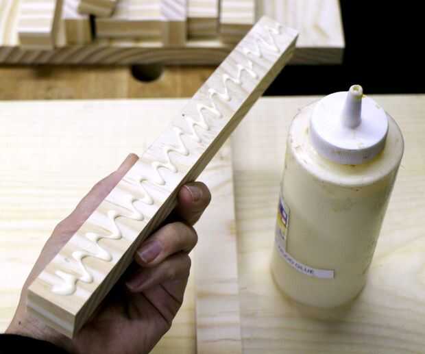 Medir y cortar calza unidades de cada estantería y pegamento entre las piezas ya pegadas exteriores.
