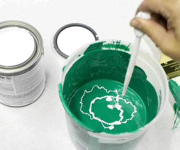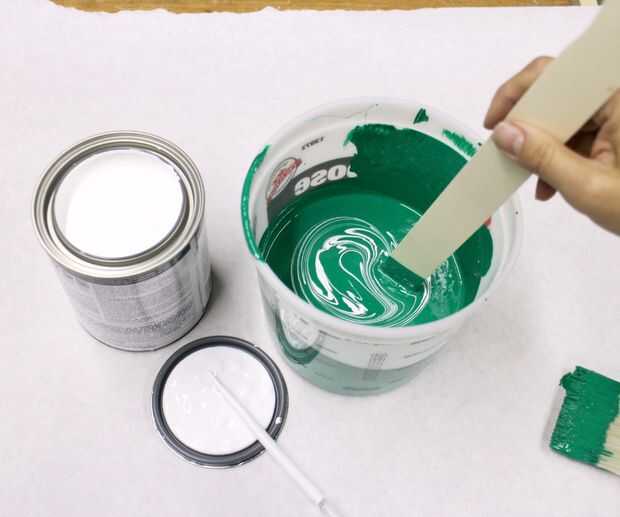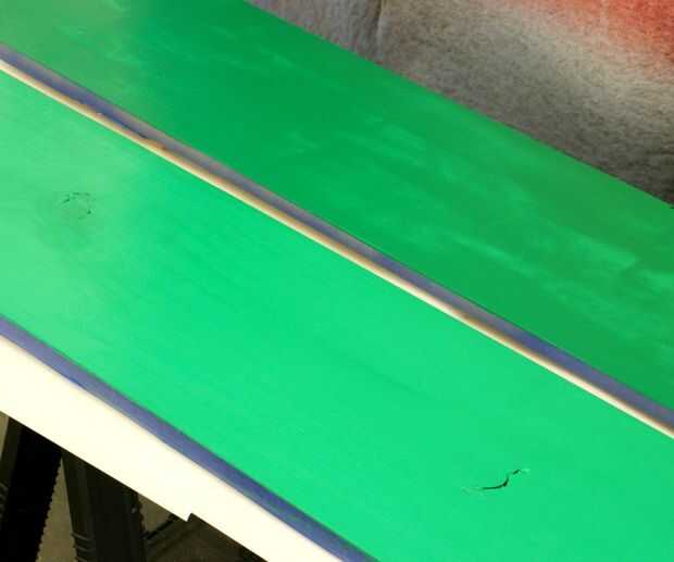 Quería que la pintura verde en mis estanterías árbol aligerar gradualmente mientras se movían hacia arriba (ver última imagen de arriba). Para ello, comencé con el verde de toda su fuerza en el estante inferior y luego añadido aproximadamente 3 cucharadas de pintura blanca y agita bien para cada estante posterior. Sienta libre de añadir pintura blanca más o menos o para saltar los verdes gradúa en conjunto.