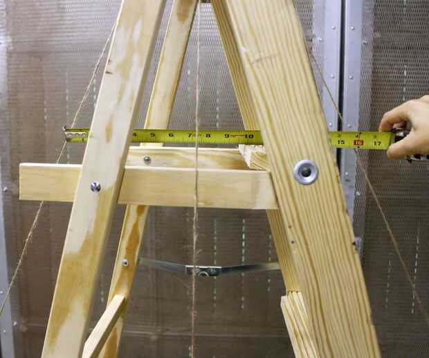 A continuación, tomar la cinta métrica y mida la distancia entre los dos pedazos de cuerda a la altura de cada peldaño.