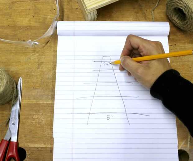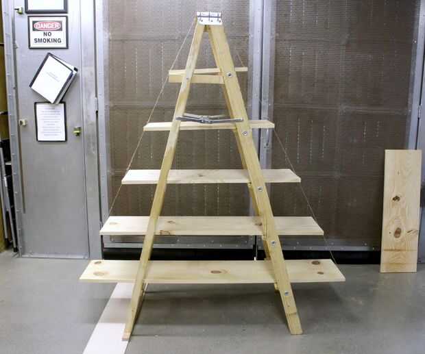 Cortar los estantes y colocarlos en sus respectivos peldaños para asegurarse de que Alinee correctamente, creando el árbol de la 'línea'.