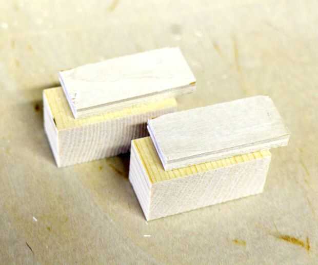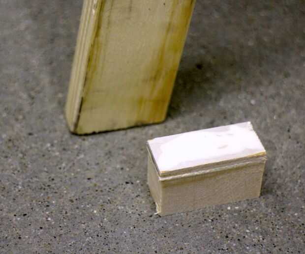 Unir las capas (si hay más de uno) con pegamento para madera y luego pegar las cuñas en la parte inferior de los pies previstas.