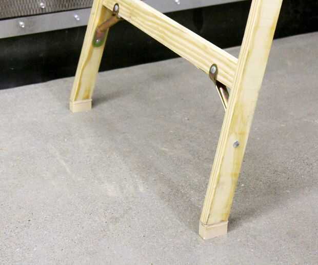 Si te has decidido a suplementar las patas del lado izquierdo de la escalera sí mismo como yo lo hice, medir la huella de los pies y cortar la laminilla (s) al tamaño.