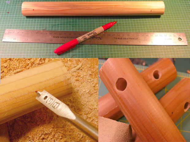 Cada peldaño será necesario dos idénticos agujeros perforados cerca del extremo de cada lado. Las marcas se hicieron 38mm (1.5") de cada extremo.