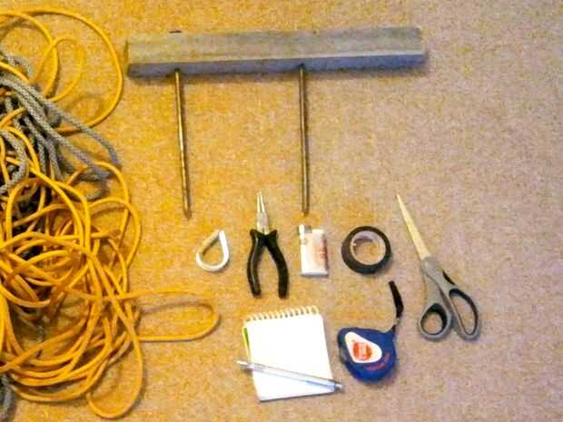 -atar la herramienta (solo un pedazo de madera y dos clavos largo, 16 cm entre ellos)
