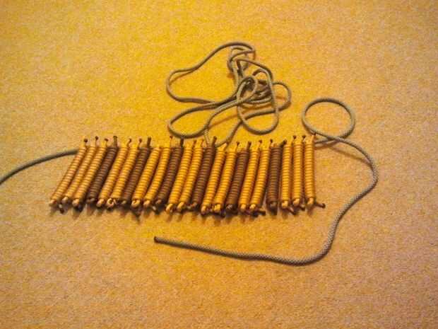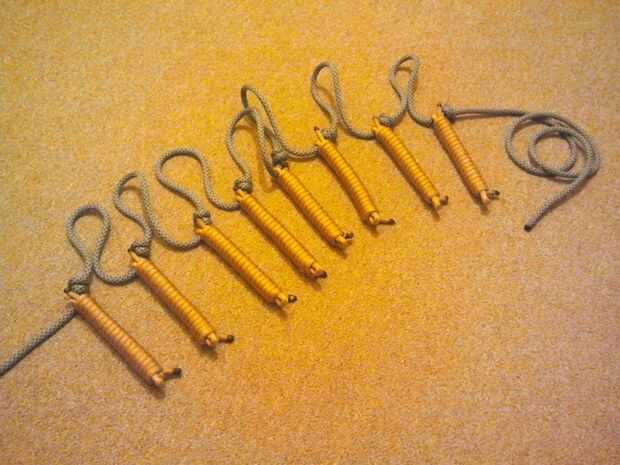 Una manera usted puede cadena de peldaños es de la parte superior. Si usted no se preocupa por el resto de la cuerda azul, sólo que ojo superior y peldaño en ambos extremos de la cadena, hacer nudos debajo de él y repetir.