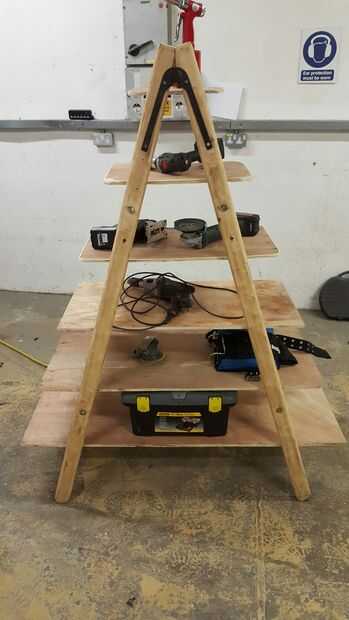 mientras la basura de madera para la chimenea de patio, nos encontramos con una escalera. Estaba en buenas condiciones por lo que se sentía como una vergüenza para quemarlo. Así que hicimos un estante jardín fuera de él!El proceso de hacer esto es mu