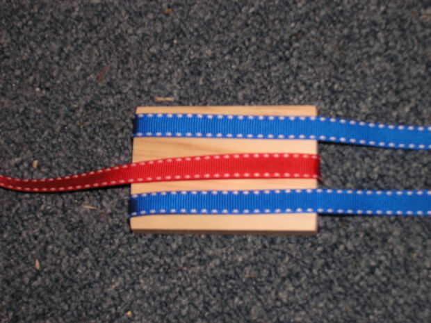 Gire los bloques en un borde y un martillo las cintas azul el borde que te enfrentas. Luego voltear para el otro borde y un martillo en la cinta roja.