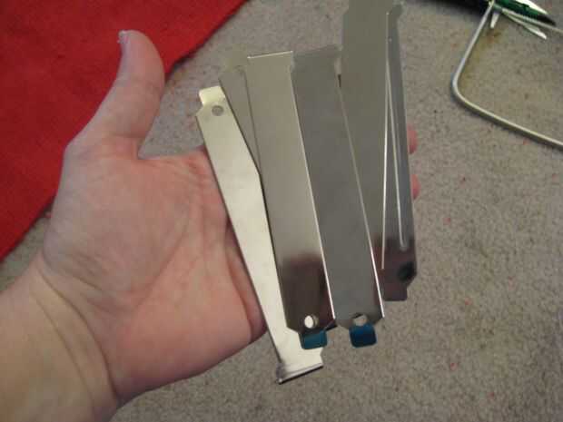 Algunos trozos de metal para asegurar a un gabinete en la parte superior. He encontrado algunas de esas cosas de metal que se utilizan al bloque hacia arriba de las ranuras pci sin usar un ordenador. Probablemente tienen un nombre, no lo saben aunque.