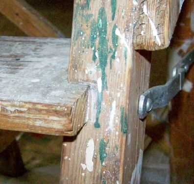 A continuación hice dado cortes en las caras de las piezas de 2 1/4 de los pasos. Los montantes con las medidas están en 65 grados de la horizontal. Hacer los cortes de mortajas para los pasos nivel cuando la escalera esté montada en ángulo.