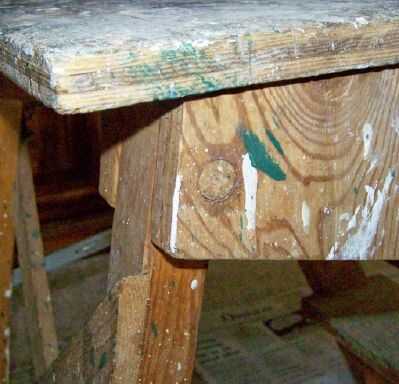 he utilizado un taco de madera de 5/8 de pulgada a los montantes delanteros de la escalera de tijera a la bita de la bisagra. Encolar los tacos en las calas, pero no en los montantes delanteros.