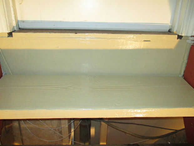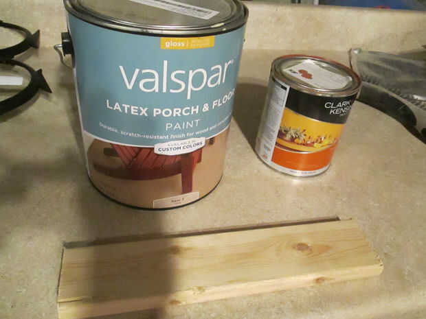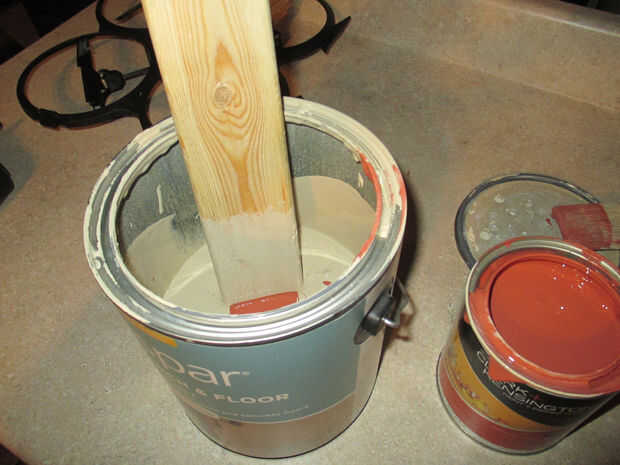 Miré lo que había disponible para la pintura del piso y descubrió que sólo tenía una opción; un color crema tan básico. Hmmm, tal vez yo puedo transición de a alguna variante de la naranja, con las cosas que pinté en la pared inferior y largueros. ¿Que tiene sentido, correcto?