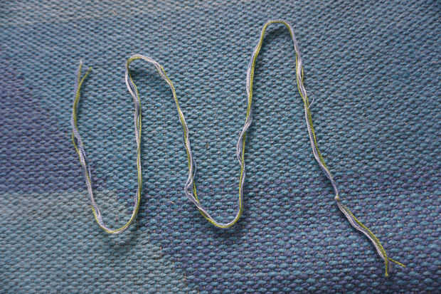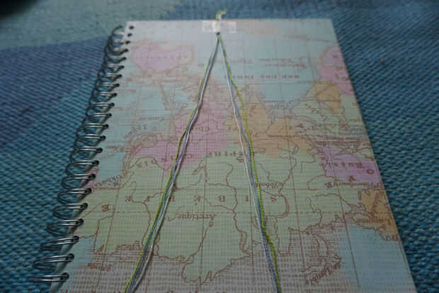 Tome el extremo de uno de sus hilos solicitadas y envuélvalo alrededor de su muñeca cuatro veces (un poco flojo es la fino) y cortarlo. Entonces usando ese hilo para la medida, corta dos hebras de esa longitud para cada color de hilo. Deberás acabar con 6 hilos, 2 de cada color. Atarlos juntos, dejando una pulgada o dos hasta la parte superior para atar la pulsera juntos cuando se hace. Cinta hilos hasta algo (estoy usando un notebook grande) y separar los hilos de rosca por lo que existen dos grupos con los tres colores en cada uno. Ahora vas a comenzar a anudar!