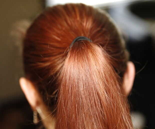 Comience con una cola de caballo. Vamos a hacer una trenza cola de pescado por el cuerpo de la cola de caballo.