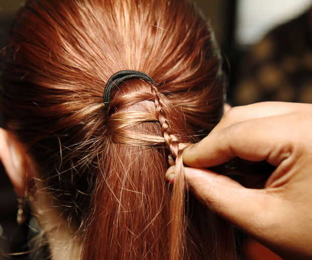 Se va a tirar por detrás porque está tomando del lado derecho y gira para atrás a la izquierda para crear una pequeña forma de S. Que desea mantener las piezas tan finas como sea posible sin ser demasiado delgada. También, asegúrese de mantener recta la trenza.