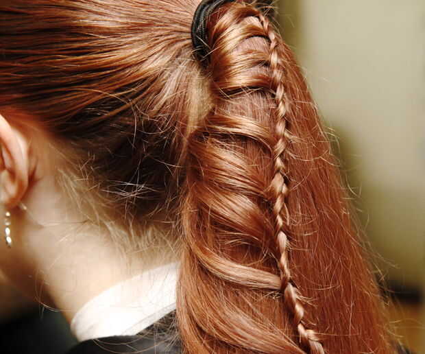 El pelo más capas en la parte inferior, dejar la trenza y asegure el extremo de sólo la trenza. Además, no después de agarrar otro filamento, terminar después de hacer un par de vueltas de la trenza.