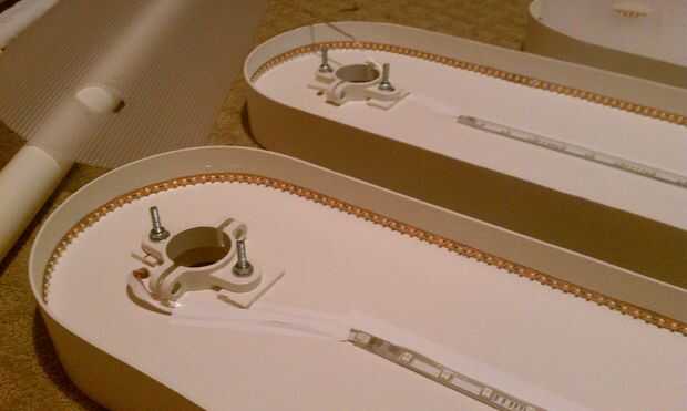 Si estás usando las barras de LED, encolarlas y enrutar el cableado al post. Cortar las líneas de 4 hilos para, pero se podría utilizar tendido si no te importa el cable extra.