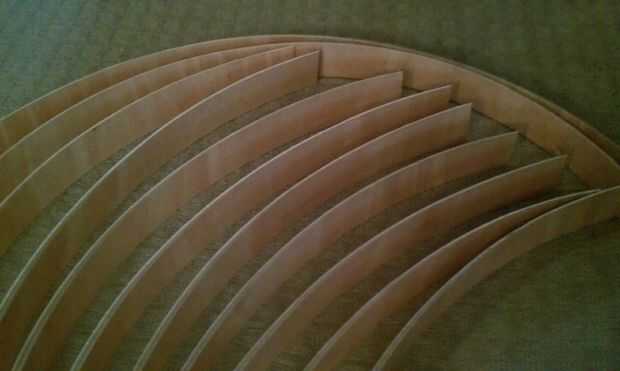 Si no estás familiarizado con junta flexible, es una madera con todas las capas en una sola dirección. Si usted está cortando con una tabla vio, usar frente y espalda soporta por lo que la Junta no se encaja por su propio peso. La Junta se curva hacia arriba, hasta crear una guardia para presionado contra la mesa usando un borde recto y las abrazaderas.