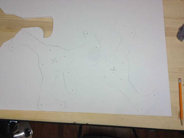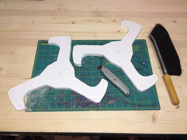 Usé un cuchillo de la caja y un corte mate. Luego utilicé una broca de 1/4 de pulgada para el agujero central y broca de 5/32 pulgadas para el resto de los agujeros.
