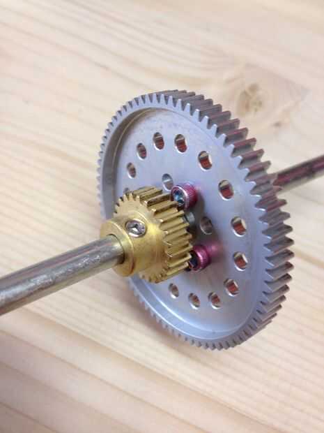 Terminé usando ejes de tornillo de ajuste para los engranajes y ejes para las ruedas. Si no usas D-eje el eje de sujeción será mucho más fácil de quitar y ajustar. Sin embargo puesto que la forma está diseñado reunir dos de los 4 tornillos como aprieta-no quería introducir cualquier posible distorsión o desviación para el tren de engranajes.
