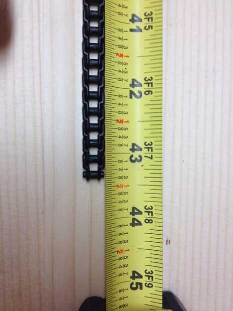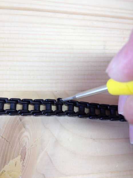 Usé la cadena plástico ServoCity porque sería más limpio para trabajar (sin grasa o aceite). Es muy fácil de agregar o quitar enlaces, todo lo que necesita es un destornillador plano pequeño. Utilicé dos cadenas cada una no era bastante de 43,5 pulgadas de largo.