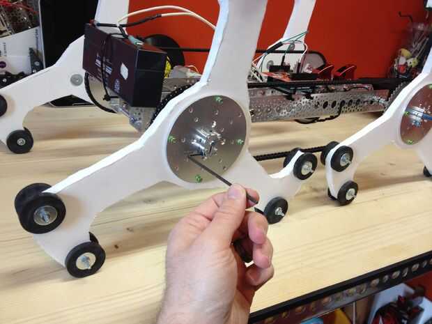 Este proyecto utiliza las partes de la Actobotics sistema de construcción para hacer un robot que sube escaleras. Los componentes principales del robot son el montaje de la pata delantera, pata trasera y los medios para que el cambio de peso entre la