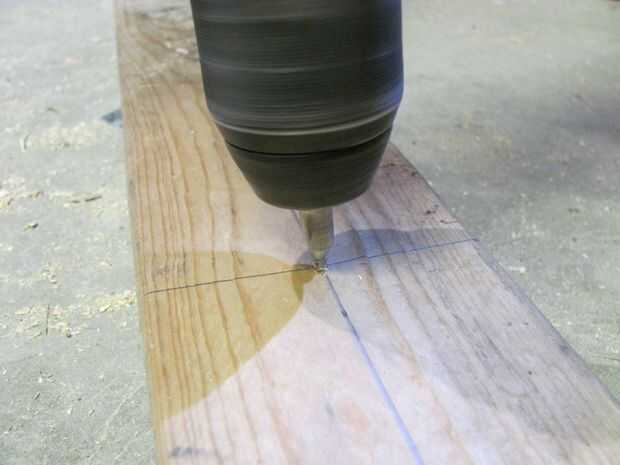 Tendrá que perforar tres agujeros en cada 2 X 4. La primera es 3 pulgadas desde la parte superior y centrado en medio de la Junta. El segundo es 20 pulgadas abajo de eso y también en el centro. Finalmente, la tercera es otra 20 pulgadas del que, también centrado. Después los orificios piloto, utilicé un poco avellanado pero esto es opcional. Por último, hice un pequeño agujero piloto en el centro de la espiga así.