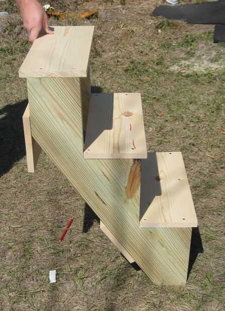 Luego había cuadrado cosas para arriba y atado el escalón superior, utilizando la misma cantidad de proyección tenían los otros pasos.