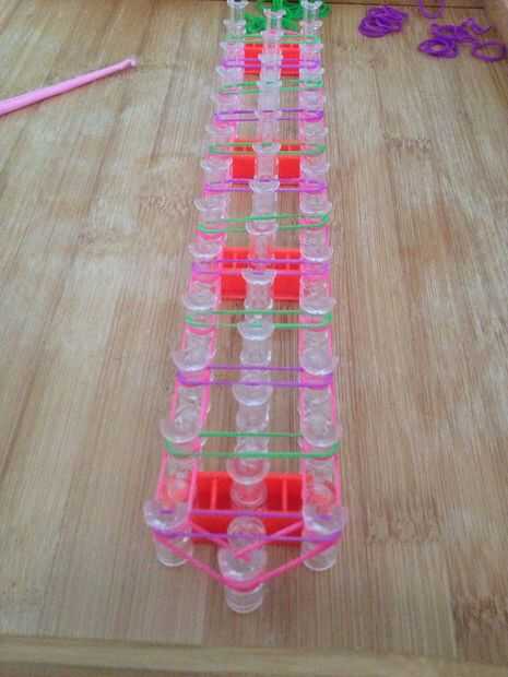 esta pulsera es tan lindo y fresco.¡Me encanta!Paso 1: fuentes de 1. telar de arco iris2. crochet gancho telar gancho o arco iris3. bandas de goma4. C-clip o pinza sPaso 2: Colocar las bandas de la frontera Coloque sus bandas de color de la frontera