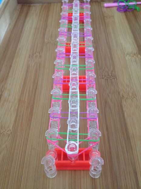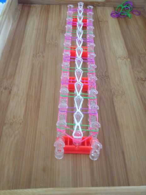 esta es una de las primeras pulseras que aprendí en mi telar. Cantidades pueden variar en diferentes telares.Paso 1: materiales You will need:Banda 26 de fuera20 bandas para escalera12 para la mediaSegún bandas de tamaño de muñecaTelarGanchoClipPaso
