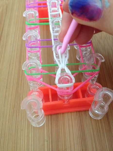 Paso 1: A partir de la frontera Primero vas a empezar con el telar de las flechas hacia arriba. Luego tienes que colocar una banda de goma de cerdo medio en la clavija izquierda luego la clavija media en la clavija de la derecha.Paso 2: Hacer de la f