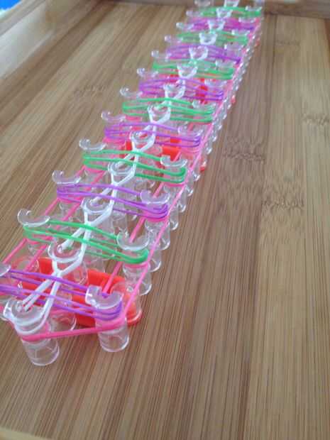 esta es una de las primeras pulseras que aprendí en mi telar. Cantidades pueden variar en diferentes telares.Paso 1: materiales You will need:Banda 26 de fuera20 bandas para escalera12 para la mediaSegún bandas de tamaño de muñecaTelarGanchoClipPaso