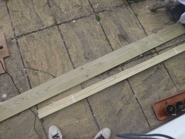 El diseño está basado en un 3-4-5 triángulo de ángulo recto que simplifica los cálculos para el diseño. Los plantadores son 200mm de alto, y sobre la misma profundidad en la parte superior, los fondos son cerca de 150mm de profundidad. Necesitaba espacio para 4 para que la escalera tendría que ser por lo menos 800mm de alto, por lo que sería de 600mm de profundidad, y el lado más largo de las tablas debe ser al menos de 1000mm. Corté un poco más largo para darle un poco de espacio en la parte superior, la tabla es de 2100mm de largo, que es perfecto.