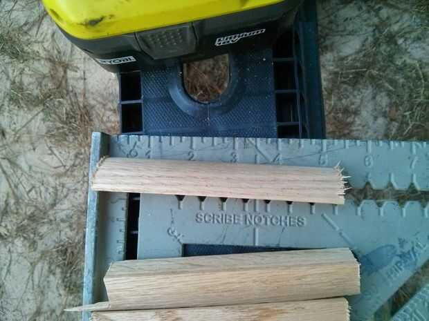 Cortar 5" soportes en el cuarto redondo. Usé el roble por 2 razones: lo tenía en la mano y es super sólido.
