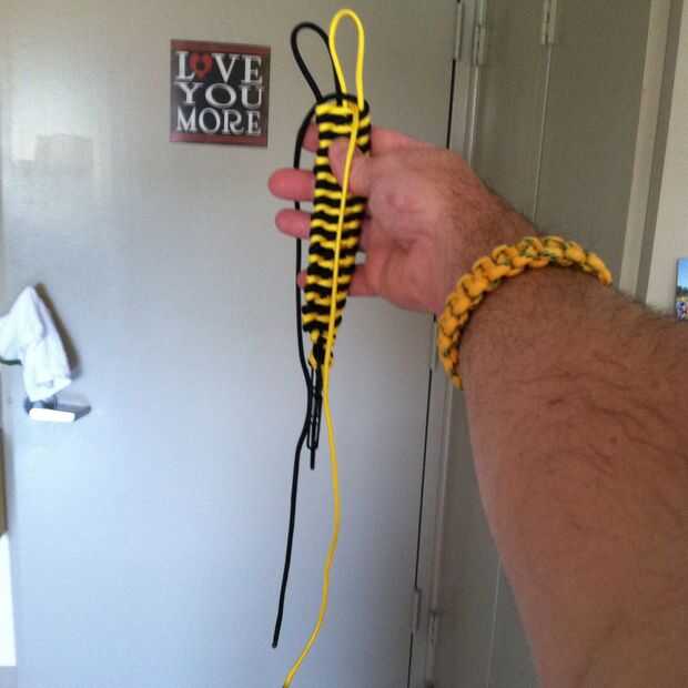 las siguientes son algunas sencillas instrucciones sobre la creación de un brazalete de paracord usando uno o dos colores diferentes de cable. Estas pulseras son usadas por la moda y también sirven en la industria al aire libre. Una vez que se desmon