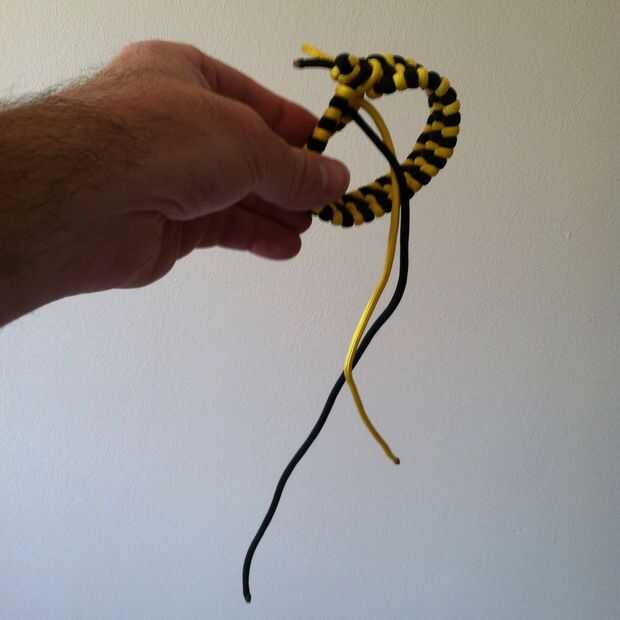 las siguientes son algunas sencillas instrucciones sobre la creación de un brazalete de paracord usando uno o dos colores diferentes de cable. Estas pulseras son usadas por la moda y también sirven en la industria al aire libre. Una vez que se desmon