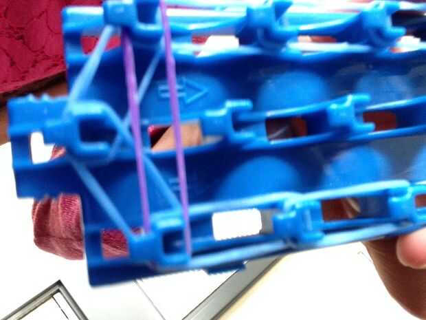 Poner bandas de goma va un cruzado y saltar un peg hasta abajo