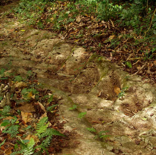 Las personas tienden a pisar el borde de los pasos, en vez de en el centro del paso. Las medidas tienden a estropearse en el frente de ellos por eso. Hacer las caras delanteras más gruesas ahora cuando hago los pasos. También, raíces de los árboles pueden crecer bajo la fina capa de cemento y romper el paso a medida que crece la raíz. Si las raíces pudren lejos bajo el cemento, causan áreas huecas, que pueden causar el nylon-cemento y hundirse bajo el peso de una persona.