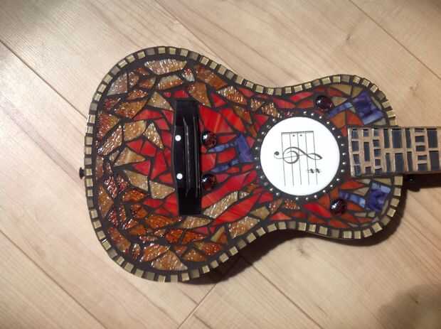 Una vez que el cuelgue de los mosaicos (que usted sin duda si su proyecto de primer o segundo es una escalera completa), puede experimentar con otras bases. Algunas de mis bases de favoritos son de upcycling como guitarras (ver mi primera foto), puertas de armario viejas (ver mi foto 4), marcos de foto de yardsales (ver mis fotos 2 º y 6 º), y cajas de joyería en tiendas de segunda mano (ver mi foto 5).