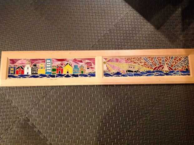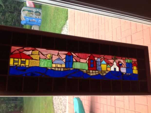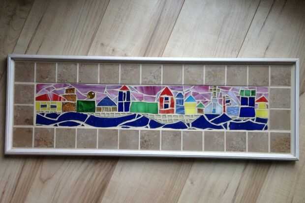Puede mosaico sobre madera o cristal. Si el mosaico de madera, ligeramente arena primero y no ir por la borda en el agua en el cemento o la madera puede deformar. Si usted mosaico en vidrio, utilice el pegamento de Weldbond, que te permitirá poner tu pieza en una ventana después de que se hace para un efecto de vidrio (ver mi ciudad en el 2 º y 6 º cuadro... que es la misma pieza!) Recuerde dejar que el pegamento seque completamente antes de aplicar la lechada. Esto puede tomar un par de días si usaste un montón de pegamento, o planificar ir luz de la cola (siempre comete el error de usar demasiado y tener un tiempo largo de secado! Ponerlo frente a una obra de deshumidificador para acelerar el proceso).