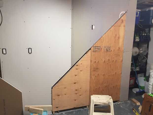 Se vuelven inutilizable espacio bajo las escaleras almacenamiento adicional. Nuestro sótano tenía yeso en ambos lados de la la escalera del sótano. Como se puede ver fue captura por lo que debe haber sido lanzado lejos. Construí dos tiran hacia fuera de los contenedores sobre ruedas por lo que se puede llegar fácilmente a las cosas dentro. Empecé quitando el yeso y las vigas. He marcado el ángulo de la escalera desde abajo con una sierra de inmersión y utilizar una sierra alternativa para cortar los montantes (probablemente debería usar una sierra circular ya que los cortes serán más suaves).