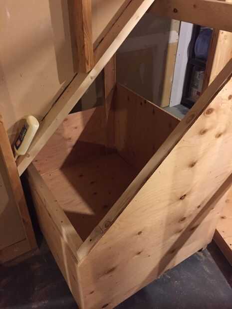 Me engañó y tiró el marco entero sobre la madera contrachapada para trazar las medidas en. Usé una sierra circular para cortar la madera contrachapada a la medida. Cubrí todo el lado frente al sótano y unos 2' en los otros tres lados. Para mi proyecto he podido usar 3 hojas de madera contrachapada de 3/8 para cubrir las cajas. Necesitaba usar dos 1' pedazos en lugar de un 2' pieza en la parte posterior de un estante para hoja de todo. Si no quería que una articulación extra en la madera contrachapada habría necesitado otra completa hoja de madera contrachapada, porque esto es almacenamiento de sótano no me preocupa la articulación extra.